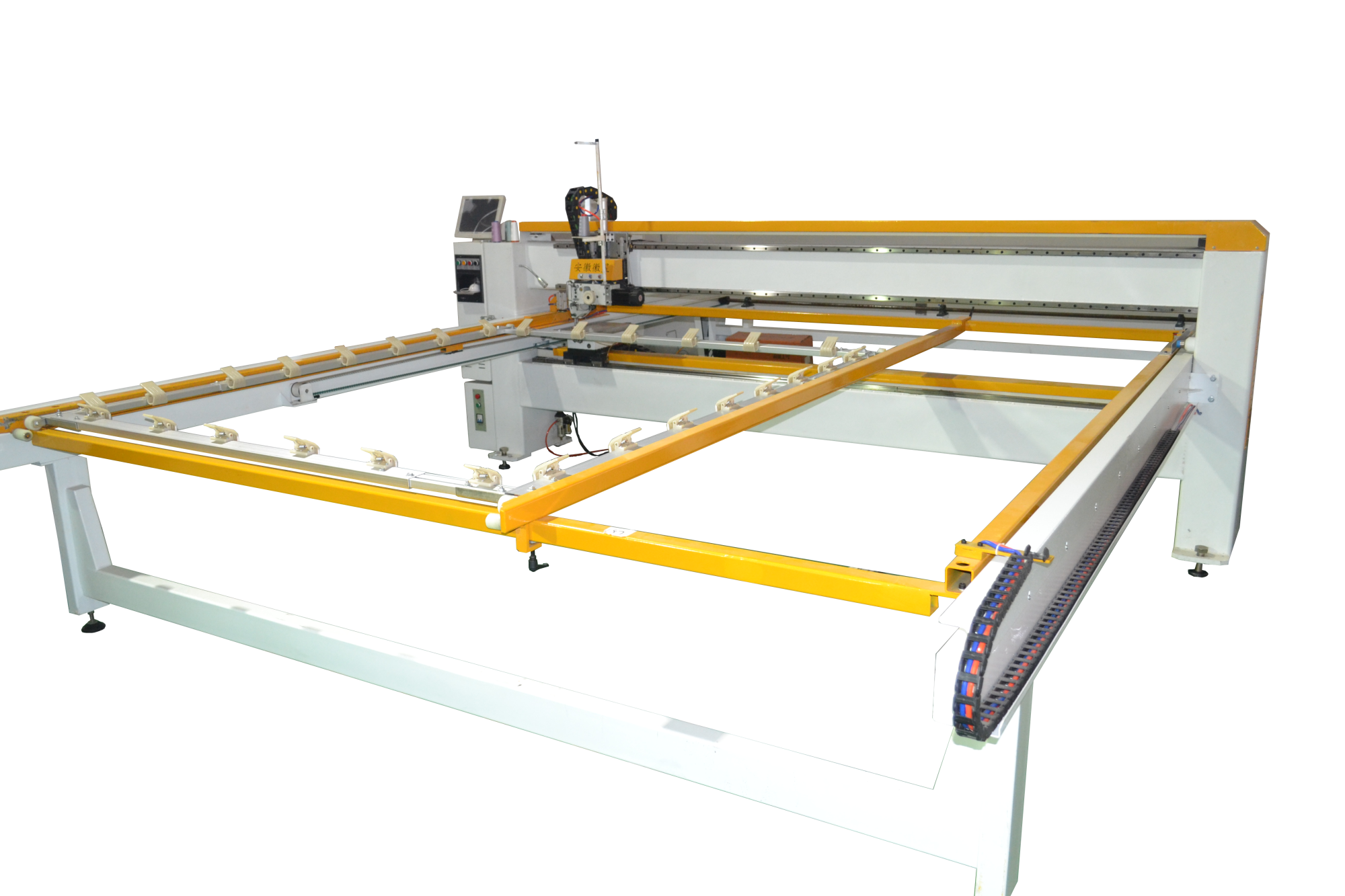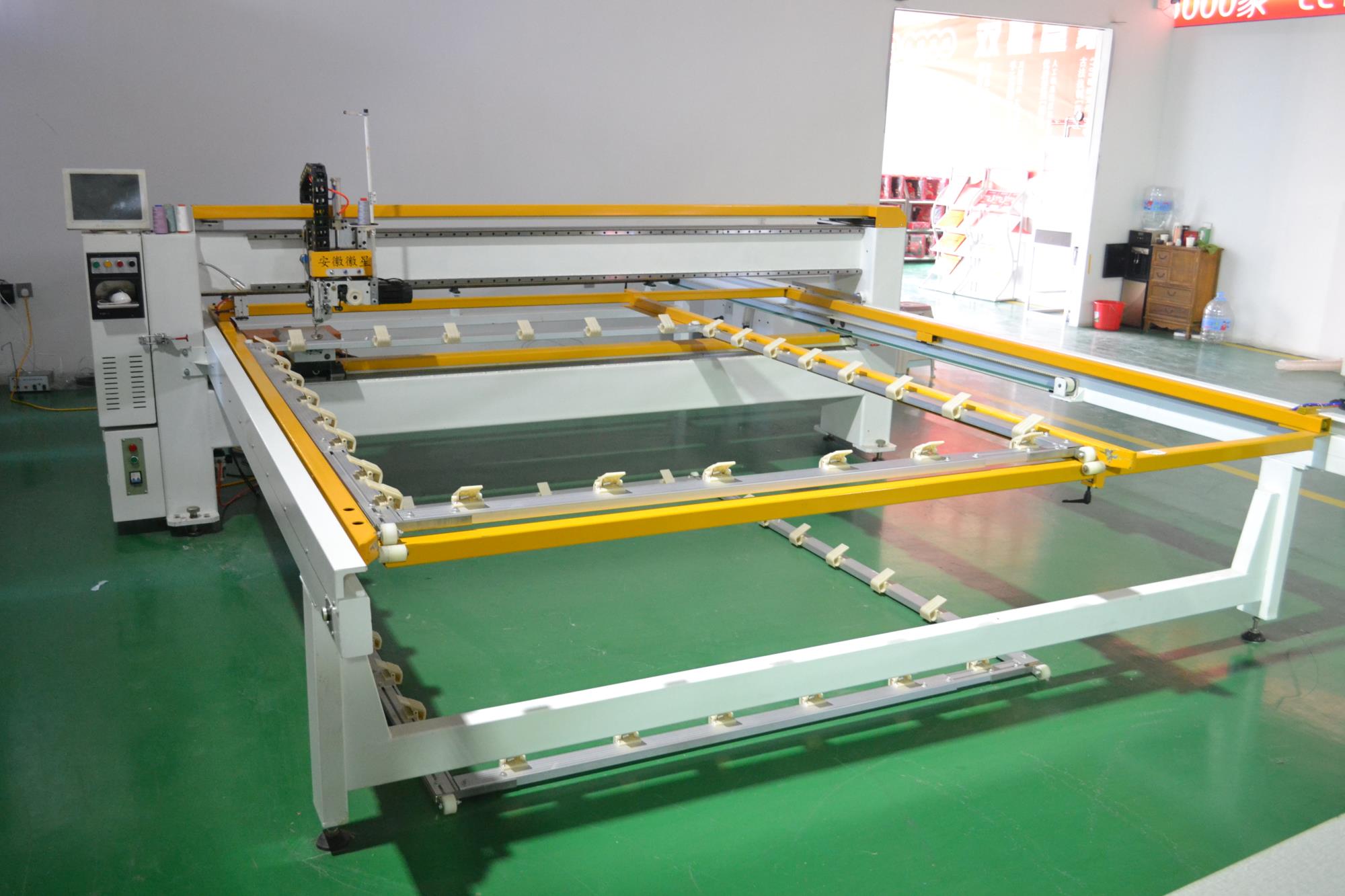 本機采用四軸伺服電機直驅,高速靜音,旋梭儲油式自動給油,使旋梭更加耐用,高穩定性圓刀剪線,剪切底面線頭長短一致,機頭10公分抬頭行程,采用精密線性導軌,機器不易跳針。棉花,羊毛,舊棉花,化纖,駝絨,納米高彈棉,新舊毛線,羽絲絨,珍珠棉,枕芯棉,PP棉,廢舊衣胎.